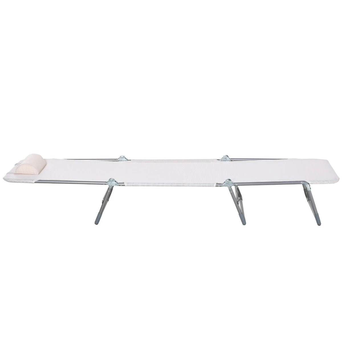 - – TUMBONA PARA EXTERIOR: Esta tumbona es el lugar de descanso perfecto para exteriores. De diseño plegable con cojín reposa-cabezas y respaldo reclinable, para pasar noches a la fresca, tardes tranquilas leyendo un libro o echando la siesta, por ejemplo – RESPALDO RECLINABLE: El respaldo se puede ajustar en 5 posiciones diferentes (24,5cm, 42cm, 60cm, 72cm y 85cm con un ángulo desde 90° hasta 180° para satisfacer diferentes necesidades y adaptar en la posición más cómoda para cada usuario – PLEGABLE: Gracias a su diseño en tres pliegues, esta tumbona se puede plegar de forma muy compacta, ahorrando espacio de almacenaje y facilitando su transporte. Ideal para llevar de viaje a la playa, camping, etc. – HECHA DE MATERIALES RESISTENTES: Hecha de acero tubular con recubrimiento en polvo para mayor resistencia a la intemperie y corrosión. Y con tela de texteline transpirable, resistente al agua y al moho y no se recalienta, ideal para los días calurosos de verano – MEDIDAS TOTALES: 182x56x24,5 cm (LxANxAL; Medidas plegadas: 67x57x8 cm (LxANxAL; Carga máxima: 120 kg