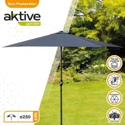 Parasol Hexagonal 250 Cm Color Antracita Mástil Aluminio Aktive Garden