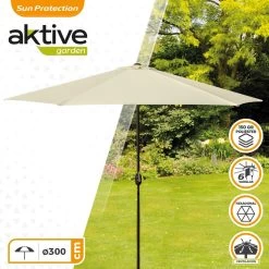 Parasol Excéntrico Roma Aktive Garden Ø300 Cm Crema Mástil Aluminio