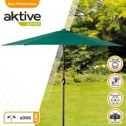 Parasol Hexagonal 300 Cm Color Verde Mástil Aluminio Aktive Garden