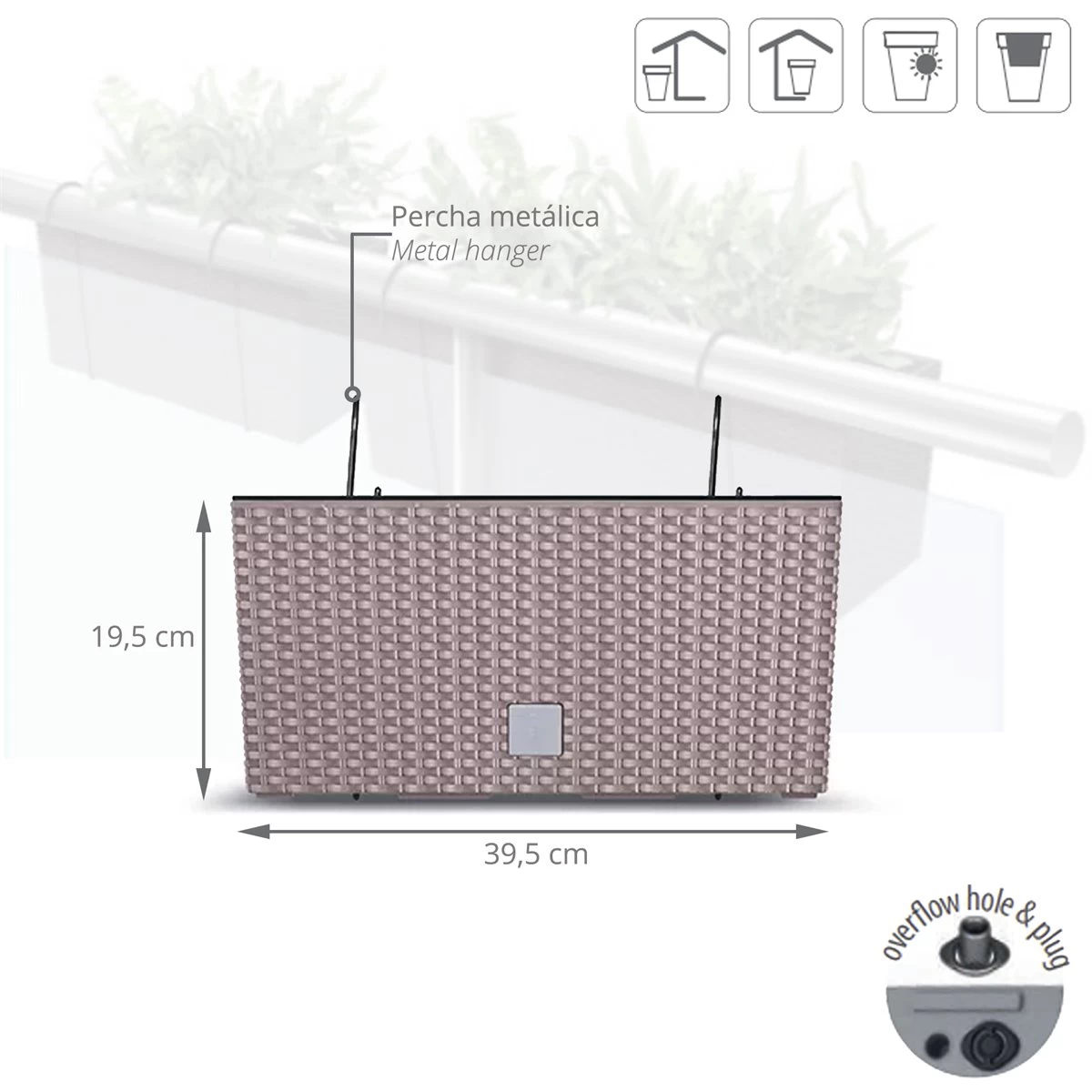 Jardinera Para Balcón De La Colección Rato Case W_x000D_Dimensiones: 395X185X195_x000D_Mocca_x000D_Incorpora Ganchos Para Sujetarse Firmemente A Barandillas