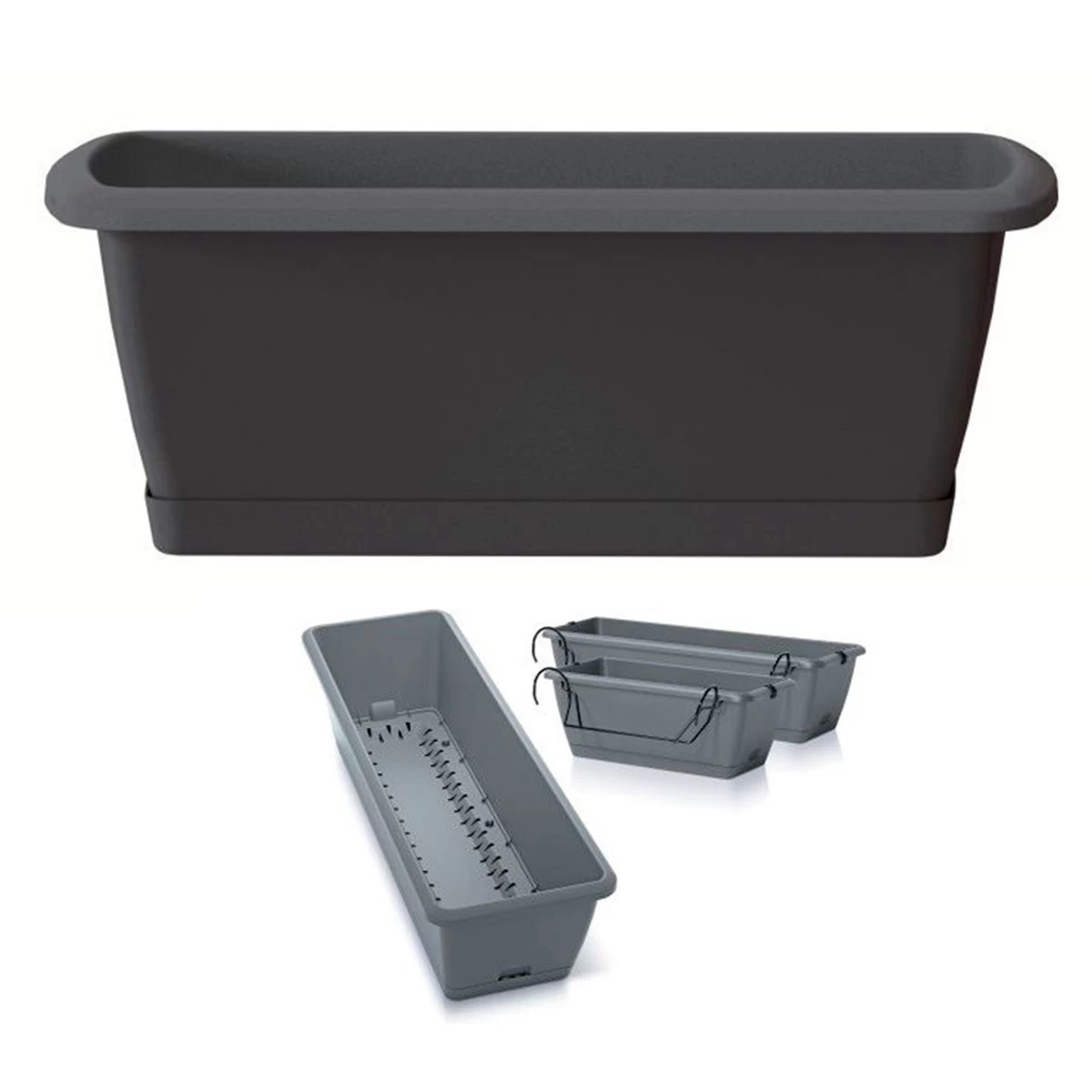 Jardinera Para Balcón De La Colección Respana Easycare_x000D_Dimensiones: 397X190X140_x000D_Marrón_x000D_Incluye Deposito Y Ganchos