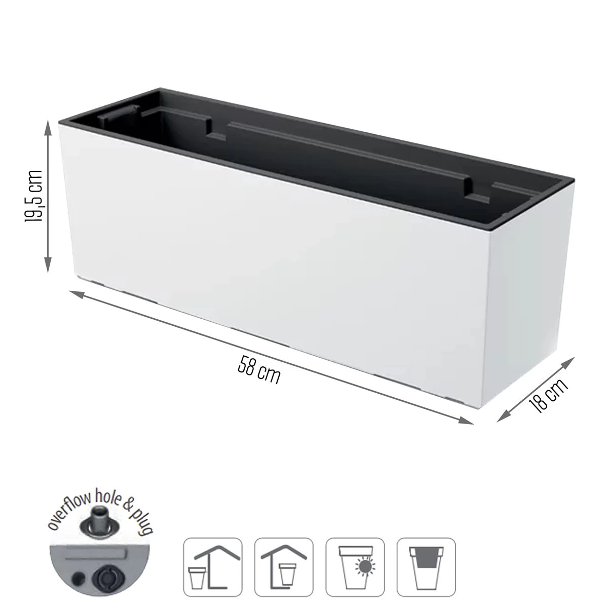 Jardinera Para Balcón De La Colección Urbi Case_x000D_Dimensiones: 580X180X195_x000D_Blanco