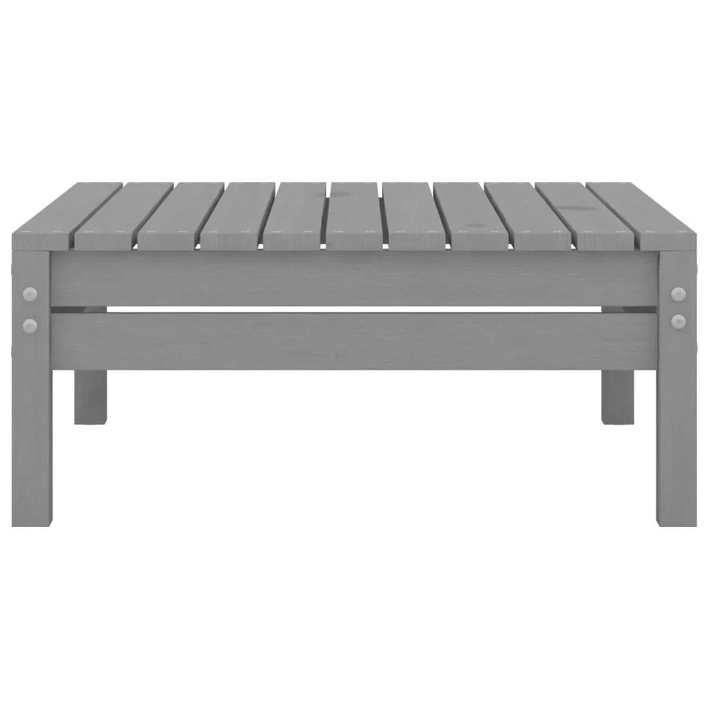 Este reposapiés de jardín de madera es una opción ideal para relajarte y disfrutar del clima, tomar una siesta o charlar con tu familia o amigos. El reposapiés para exteriores está hecho de madera maciza de pino, lo que lo hace robusto y estable. Además, este reposapiés para patio también cuenta con un diseño modular, lo que lo hace completamente flexible y fácil de mover para adaptarse a cualquier entorno. Nota: Para prolongar la vida útil de los muebles de exterior, te recomendamos que los limpies con regularidad y no los dejes al aire libre sin protección innecesariamente.Limpieza: Usa una solución de jabón suave.Almacenamiento: Si es posible, guarda el producto en un lugar fresco y seco en el interior. Si el producto se almacena al aire libre, protégelo con una funda impermeable. Limpia y seca el exceso de agua o nieve de las superficies planas después de una lluvia o nevada. Permite la ventilación para evitar daños relacionados con la humedad. Color: GrisMaterial: Madera de pino macizaDimensiones: 63,5 x 63,5 x 28,5 cm (largo x ancho x altoRequiere montaje: Sí