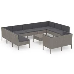 Crea un salón llamativo y relajante con el que siempre has soñado con este juego de salón de jardín. ¡Puedes disfrutar de una tarde soleada y relajante o una noche de verano con tu familia y amigos en este juego de muebles de jardín! Con el ratán PE resistente a la intemperie, este juego de salón para exterior es fácil de limpiar y mantener. La estructura de acero con recubrimiento en polvo hace que el juego de tumbonas sea estable y robusto. Equipado con cojines gruesos y suaves, este juego de tumbonas de jardín brindará la máxima comodidad para sentarse. Las fundas de poliéster fáciles de limpiar se pueden quitar y lavar. Además, gracias a su diseño ligero y modular, puedes mover este conjunto por tu casa con gran facilidad. Nota: Para prolongar la vida útil de los muebles de exterior, te recomendamos que los limpies con regularidad y no los dejes al aire libre sin protección innecesariamente.Limpieza: Usa una solución de jabón suaveAlmacenamiento: Si es posible, guarda el producto en un lugar fresco y seco en el interior. Si el producto se almacena al aire libre, protégelo con una funda impermeable. Limpia y seca el exceso de agua o nieve de las superficies planas después de una lluvia o nevada. Permite la ventilación para evitar daños relacionados con la humedad. Color: GrisColor de cojines: Gris antracitaMaterial: Ratán PE, acero con recubrimiento en polvo, tela (100% poliésterDimensiones de la mesa: 60 x 60 x 35 cm (ancho x profundo x altoDimensiones del sofá central: 57 x 69 x 69 cm (ancho x profundo x altoDimensiones del sofá de esquina: 69 x 69 x 69 cm (ancho x profundo x altoAnchura del asiento: 57 cmProfundidad del asiento: 57 cmAltura del asiento desde el suelo: 35 cmRequiere montaje: SíLa entrega incluye:1 x Mesa7 x Sofás centrales4 x Sofás de esquina11 x Cojines de asiento15 x Cojines de respaldo