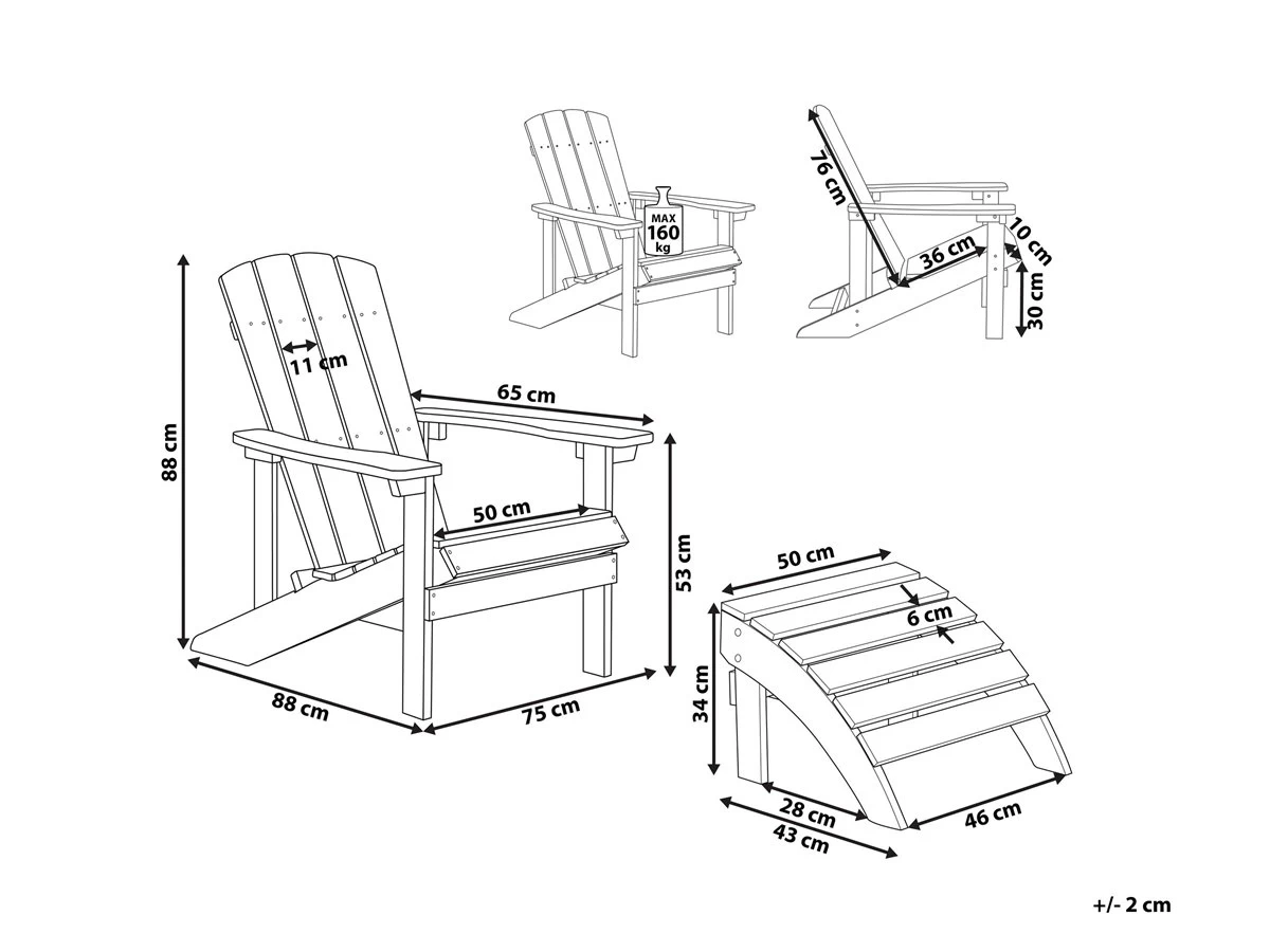 Silla de jardín con reposapiés. Añade un toque atemporal a tu zona exterior con esta silla de jardín. Está fabricada a partir de material de imitación de madera de alta calidad. Los reposabrazos anchos, el respaldo plano, el asiento contorneado y el reposapiés ofrecen el mejor lugar para relajarse por completo. Combina a la perfección el diseño tradicional con un acabado moderno. Detalles: Tipo de Producto: Silla de jardín Estilo: Retro Color: Blanco Tipo de material: Material sintético Material principal: Madera plástica Material adicional: Acero inoxidable Material de las patas: Material sintético Material del asiento: Material sintético Apoyabrazo: Sí Acabado: Mate Plegable: No Apilable: No Dimensiones: Altura del apoyabrazos: 53 cm Profundidad: 88 cm Dimensiones del reposapies: 46x43x34 cm Altura del asiento: 30 cm Ancho: 75 cm Altura: 88 cm Superficie del asiento: 46×50 cm Peso: 20 kg Capacidad de peso: 160 kg La oferta incluye: 1 x Silla, 1 x Taburete Ventajas: Cómodos apoyabrazos, Perfecto para todo tipo de exterior, Materiales reciclables y ecológicos, Ideal para uso al aire libre, Resistencia UV, Mantenimiento sencillo Información de montaje: Requiere montaje completo. 20-40 min. Información adicional: El producto viene con un libro de cuidados detallado para ayudarte a mantener tus muebles en las mejores condiciones durante muchos años. Consulta estos consejos para garantizar el mantenimiento adecuado de tus muebles nuevos – encontrarás las instrucciones de mantenimiento junto con el manual de montaje. Texto de resistencia: El producto es resistente al agua, lo que significa que no se dañará expuesto a la lluvia o en contacto con otros líquidos. Puede dejarlo al aire libre incluso durante fuertes lluvias o humedad. Durante la temporada de invierno es recomendable almacenar el producto en el interior o bajo una cubierta impermeable. Resistencia: Agua Consejos de mantenimiento: Madera plástica: 1.Limpiar con un limpiador a base de jabón suave y un paño suave, 2.El material es extremadamente resistente a la intemperie. Sin embargo, se recomienda utilizar una funda protectora para la temporada de invierno o, si es posible, guardar los muebles en un lugar fresco y seco 3.Manténgalo alejado de fuentes de calor, como parrilla o fuego, ya que las chispas pueden causar daños graves. No coloque utensilios calientes directamente sobre la superficie