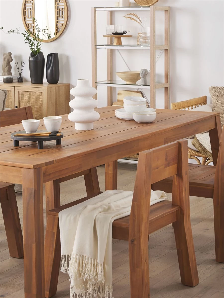 Silla de jardín. Decora tu exterior con esta silla de jardín de inspiración moderna. Está fabricada a partir de madera de acacia de alta calidad. Las líneas limpias combinan bien con una gran variedad de estilos de decoración. Pueden ser utilizada en interiores y exteriores. Detalles: Tipo de Producto: Silla de jardín Estilo: Tradicional Color: Madera clara Tipo de material: Madera maciza Material principal: Madera de acacia Material de las patas: Madera maciza Material del asiento: Madera maciza Apoyabrazo: No Acabado: Aceitado Plegable: No Apilable: No Dimensiones: Profundidad: 61 cm Altura del asiento: 45 cm Ancho: 59 cm Altura: 81 cm Superficie del asiento: 51×54 cm Peso: 15 kg Capacidad de peso: 160 kg La oferta incluye: 1 x Silla Ventajas: Asiento extremadamente cómodo, Perfecto para todo tipo de exterior, Materiales de la más alta calidad, No requiere mantenimiento regular, Ideal para uso en interiores y exteriores Información de montaje: Requiere montaje completo. 20-40 min. Información adicional: Por favor, ten en cuenta que la madera es un producto natural, y cada pieza puede presentar ligeras variaciones. Las diferencias en el color o la textura, como las arrugas u otras características naturales, no se consideran un defecto ni tampoco una base de reclamación, El producto viene con un libro de cuidados detallado para ayudarte a mantener tus muebles en las mejores condiciones durante muchos años. Consulta estos consejos para garantizar el mantenimiento adecuado de tus muebles nuevos – encontrarás las instrucciones de mantenimiento junto con el manual de montaje. Texto de resistencia: Gracias a su resistencia al agua, puedes utilizar el producto al aire libre y dejarlo a la intemperie durante lluvias ligeras. Si no es posible guardarlo en un lugar cerrado y protegido, recomendamos utilizar una funda protectora. La exposición prolongada a la humedad puede provocar daños en el mueble. Resistencia: Agua ligera / humedad Consejos de mantenimiento: Madera de acacia: 1.Durante el invierno o en condiciones climáticas adversas, utilice una funda protectora o guarde los muebles en el interior 2.Los muebles con acabado de aceite deben volverse a engrasar antes de ponerlos en uso y al menos una vez al año, especialmente en el clima húmedo 3.Limpiar con un limpiador suave y un paño suave en la dirección de la veta. Secar con un paño inmediatamente después de limpiar.