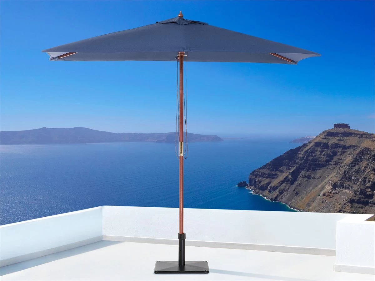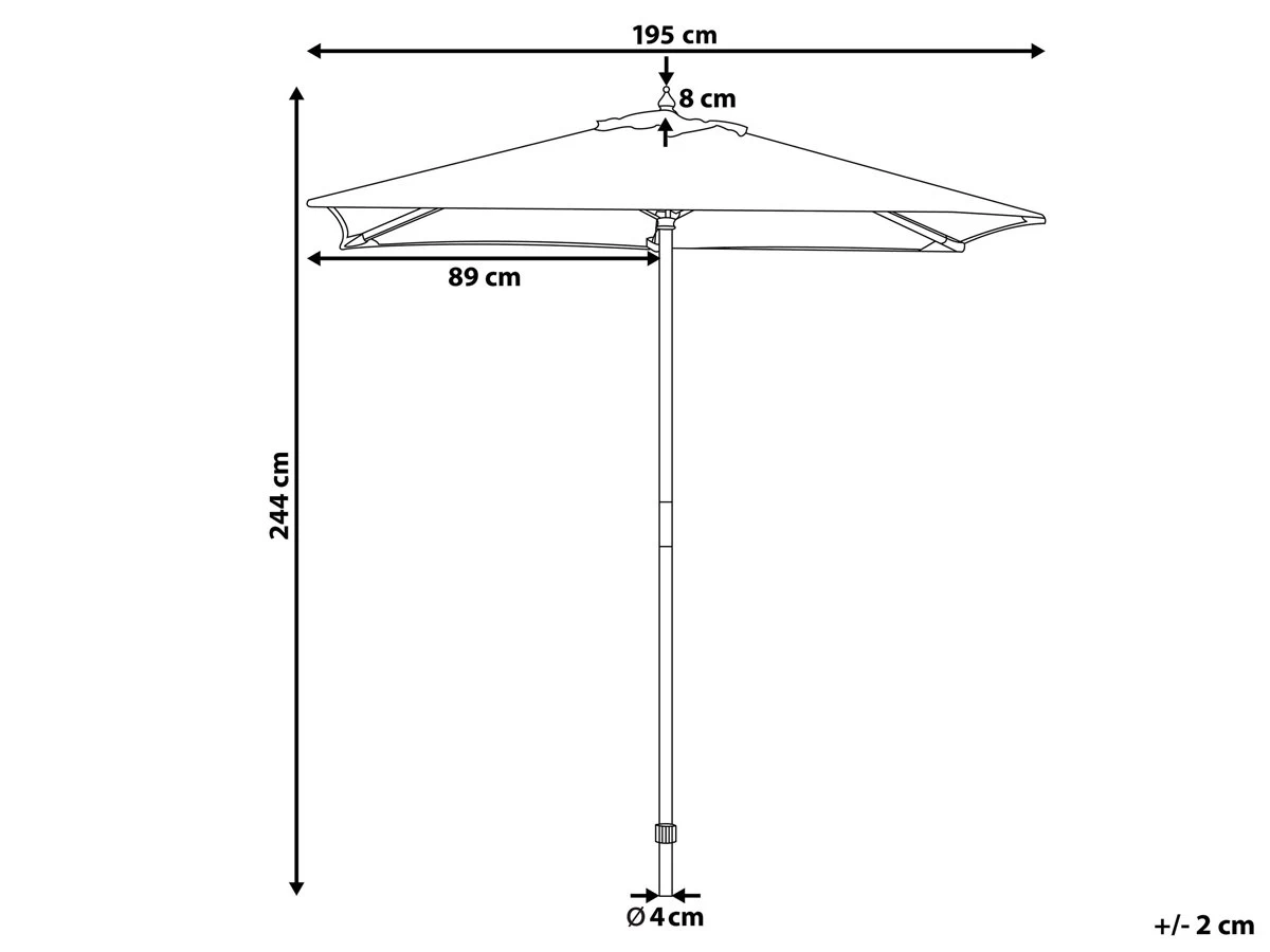 Sombrilla de jardín. Añade modernidad a tu zona exterior con esta sombrilla de jardín. El toldo de tela de poliéster resistente y el poste fijo de madera de abedul garantizan protección contra los rayos UV, el agua y condiciones climáticas adversas. El mecanismo de cuerda permite cerrar y abrir la sombrilla con facilidad. Detalles: Tipo de Producto: Sombrilla Estilo: Moderno Color: Beige Tonalidad: Beige claro Tipo de material: Madera maciza Material principal: Poliéster Material adicional: Madera de abedul Composición del Material: 100% Poliéster Forma: Rectangular Rotación 360: No Placas: No LED: No Número de láminas: 6 Láminas: 6 Inclinación: No Mecanismo de abertura de la sombrilla: Cuerda Dimensiones: Profundidad: 144 cm Ancho: 195 cm Diámetro del poste: 38 Altura: 244 cm Peso: 5 kg La oferta incluye: 1 x Sombrilla, No incluye: base Ventajas: Práctico sistema de abertura con cuerda, Diseño atemporal, Construcción muy estable, Resistencia UV, UPF 50+ (filtra el 98% de la radiación UV, Mantenimiento sencillo Información de montaje: Requiere montaje parcial. 5-15 min. Información adicional: Debe tenerse en cuenta que el peso ideal de la base para la sombrilla es de unos 20-25 kg. De esta forma, la sombrilla podrá soportar vientos de hasta 25 km/h. Texto de resistencia: El producto está hecho con tela resistente a los rayos UV, lo que significa que se puede usar bajo la luz del sol sin preocuparse por la pérdida de color. En cualquier caso, es recomendable colocar los muebles debajo de una cubierta impermeable cuando no se utilicen, para asegurar su máxima durabilidad. Resistencia: Rayos UV Consejos de mantenimiento: Poliéster: 1.Aspire con un accesorio adecuado 2.Limpiar con champú seco y una esponja húmeda o un limpiador suave 3.Cuando no esté en uso, manténgalo en un lugar limpio y seco para protegerlo de las condiciones atmosféricas. Madera de abedul: 1.Limpiar con un limpiador suave y un paño suave en la dirección de la veta. Secar con un paño inmediatamente después de limpiar 2.Durante el invierno o en condiciones climáticas adversas, utilice una funda protectora o guarde los muebles en el interior 3.Los muebles con acabado de aceite deben volverse a engrasar antes de ponerlos en uso y al menos una vez al año, especialmente en el clima húmedo.