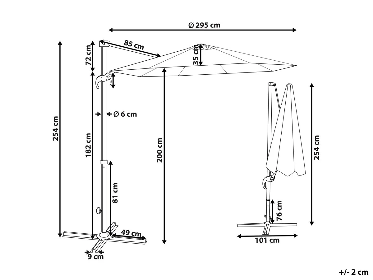 Sombrilla de jardín. Añade un toque de elegancia a tu zona exterior con esta sombrilla de jardín. Está fabricada a partir de poliéster resistente a las manchas y a condiciones climáticas adversas. La función giratoria 360º permite orientarla a la dirección deseada. El mecanismo de manivela facilita la apertura y el cierre. Detalles: Tipo de Producto: Sombrilla sin volantes Estilo: Moderno Color: Gris Tonalidad: Gris oscuro Tipo de material: Metal Material principal: Poliéster Material adicional: Aluminio Composición del Material: 100% Poliéster Forma: Octagonal Rotación 360: Sí Placas: No LED: No Número de láminas: 8 Láminas: 8 Inclinación: Sí Mecanismo de abertura de la sombrilla: Manivela Dimensiones: Profundidad: 295 cm Ancho: 295 cm Diámetro del poste: 40 Altura: 254 cm Peso: 9 kg La oferta incluye: 1 x Sombrilla, No incluye: base para la sombrilla Ventajas: Mecanismo de abertura por manivela, Pantalla giratoria e inclinable de 360°, Base en cruz para pesas en sombrillas, Colores elegantes y diseño original, Apariencia moderna y calidad durante muchos años, Resistencia UV Información de montaje: Requiere montaje completo. 5-15 min. Información adicional: Debe tenerse en cuenta que el peso ideal de la base para la sombrilla es de unos 50 kg. De esta forma, la sombrilla podrá soportar vientos de hasta 25 km/h. Una vez que la sombrilla esté completamente cerrada o abierta, no continúes girando la manivela en la misma dirección, ya que podrías dañar el mecanismo. Texto de resistencia: El producto está hecho con tela resistente a los rayos UV, lo que significa que se puede usar bajo la luz del sol sin preocuparse por la pérdida de color. En cualquier caso, es recomendable colocar los muebles debajo de una cubierta impermeable cuando no se utilicen, para asegurar su máxima durabilidad. Resistencia: Rayos UV Consejos de mantenimiento: Poliéster: 1.Cuando no esté en uso, manténgalo en un lugar limpio y seco para protegerlo de las condiciones atmosféricas 2.Aspire con un accesorio adecuado 3.Limpiar con champú seco y una esponja húmeda o un limpiador suave.
