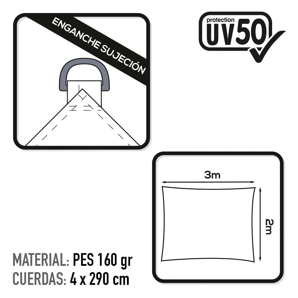- Fabricado con materiales resistentes y con protección UV 50 mide 200×300 cm
