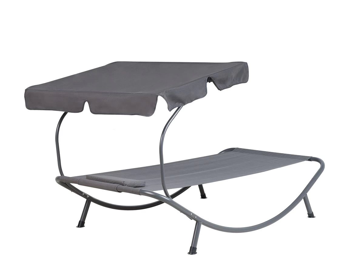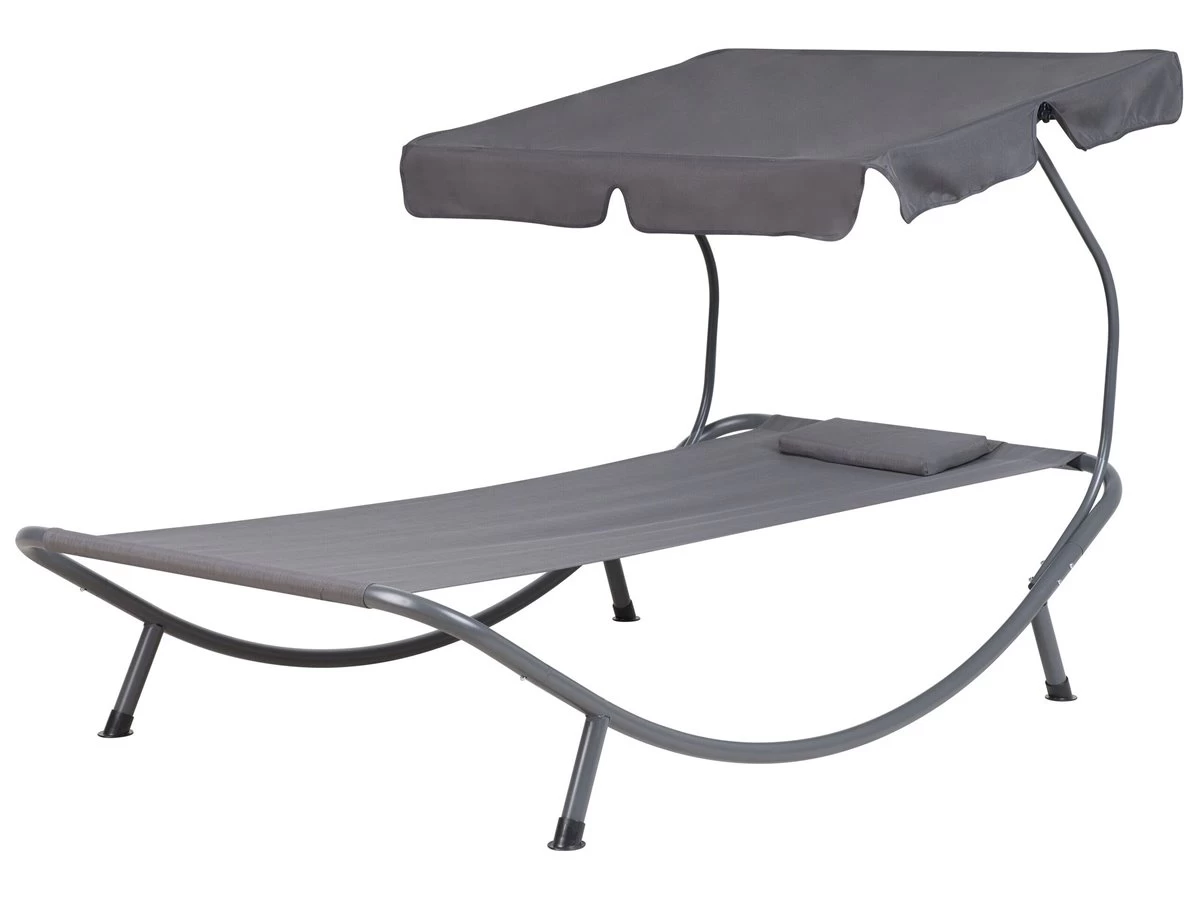 Lujosa tumbona de jardín con techo ajustable. A todos nos gusta pasar el tiempo al aire libre y disfrutar el sol. Esta maravillosa tumbona es perfecta para esto. Su diseño moderno combina funcionalidad y comodidad. Su elegante y arqueado marco de acero con recubrimiento de polvo gris con 4 patas estables garantiza confort y seguridad. La superficie para tenderse está hecha del material resistente a la intemperie, en un delicado tono de gris. Su práctico techo de poliéster de color gris da una agradable sombra en los días más calurosos. La funda del techo es desmontable y se puede lavarla a mano o en lavadora, en un máximo de 30 grados. Detalles: Tipo de Producto: Tumbona Estilo: Moderno Color: Gris Tonalidad: Gris oscuro Tipo de material: Acero Material principal: Acero Composición del Material: 100% Poliéster Respaldo ajustable: No Apoyabrazo: No Acabado: Revestimiento en polvo Plegable: No Dimensiones: Profundidad: 200 cm Altura del asiento: 42 cm Ancho: 110 cm Altura: 110 cm Peso: 17 kg Capacidad de peso: 200 kg La oferta incluye: 1 x Tumbona de exterior Ventajas: Altura del toldo ajustable, Brinda comodidad y relajación, Perfecto para todo tipo de exterior, Mantenimiento sencillo, Anchas patas de soporte que proporcionan la máxima estabilización Información de montaje: Requiere montaje completo. 20-40 min. Consejos de mantenimiento: Acero: 1.Quite las tapas protectoras con regularidad para que salga todo el líquido, déjelas secar y utilice un spray anticorrosión si es necesario 2.Limpiar con detergentes suaves 3.Los muebles de acero y sus elementos no deben exponerse al agua. De lo contrario, existe la posibilidad de que el agua oxidada salga de las tuberías del marco 4.Cuando no estén en uso, los muebles deben guardarse en el interior o bajo una cubierta protectora 5.Para aumentar la durabilidad del artículo, manténgalo seco y recuerde la limpieza regular 6.Cualquier daño a la capa de pintura exterior debe protegerse de la humedad 7.Para garantizar la protección contra la corrosión, evite los limpiadores alcalinos o ácidos. Después de limpiar, secar bien. Poliéster: 1.Aspire con un accesorio adecuado 2.Limpiar con champú seco y una esponja húmeda o un limpiador suave 3.Cuando no esté en uso, manténgalo en un lugar limpio y seco para protegerlo de las condiciones atmosféricas.